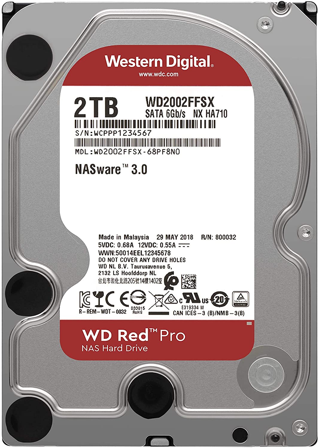 Western Digital 2TB WD Red Pro NAS Internal Hard Drive HDD - 7200 RPM, SATA 6 Gb/s, CMR, 64 MB Cache, 3.5" - WD2002FFSX